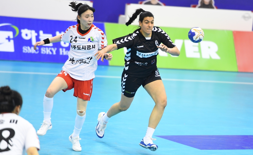 | ▲ 7일 광주도시공사 전에 출전한 부산시설공단 외국인 선수 프리올리(오른쪽). [대한핸드볼협회 제공. 재판매 및 DB 금지] |