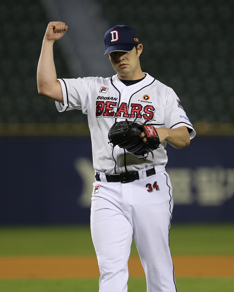 Rucinski didn't help himself. After fielding Kang Seung-ho's sacrifice bunt attempt, Rucinski made a wide throw to third base that skipped into the foul territory as Kang Jin-sung scored to make it 3-1 for the Bears.