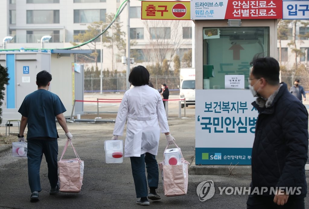 | ▲ This photo taken on Feb. 13, 2021, shows medical staff entering the coronavirus testing center of Soonchunhyang University Hospital in Seoul. (Yonhap) |