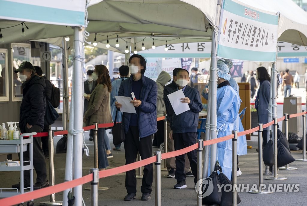 | ▲ People line up to be tested for COVID-19 at a temporary testing center at Seoul Station in central Seoul on April 8, 2021. (Yonhap) |