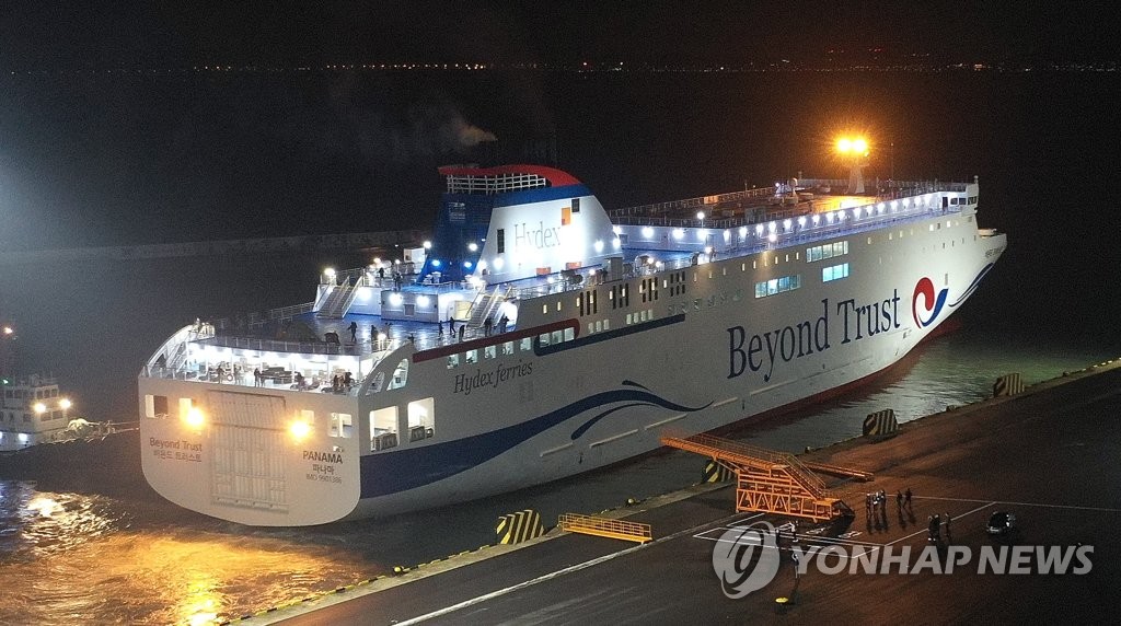 SEOUL, Dec. 10 (Yonhap) -- A car ferry set sail from South Korea's western port of Incheon to the country's southern resort island of Jeju on Friday in the resumption of the route in more than seven years following the deadly sinking of the Sewol ferry.