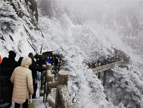 | ▲ 설경 속 황산 오르는 중국 관광객들 [바이두 캡처. 재판매 및 DB 금지] |