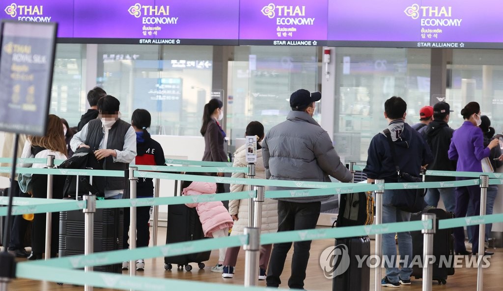 | ▲ This photo taken on Nov. 1, 2021, shows outbound passengers for Thailand at Incheon International Airport in Incheon, just west of Seoul, amid eased virus curbs. (Yonhap) |
