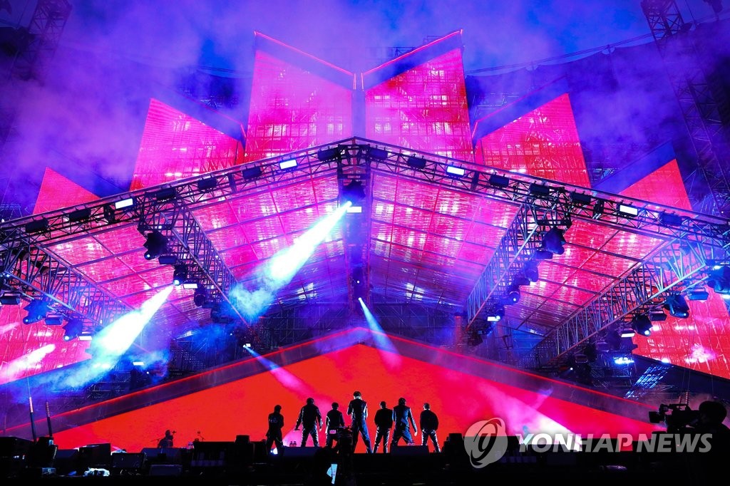 SEOUL, Oct. 15 (Yonhap) -- Global pop group BTS held a free concert in the southeastern port city of Busan on Saturday night to support the city's bid to host the 2030 World Expo.