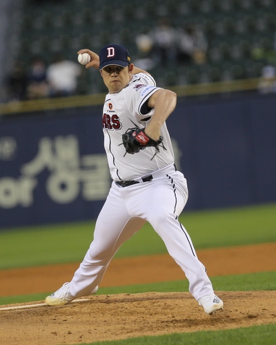 | ▲  Robert Stock of the Doosan Bears pitches against the NC Dinos during a Korea Baseball Organization regular season game at Jamsil Baseball Stadium in Seoul on April 26, 2022, in this photo provided by the Bears. (PHOTO NOT FOR SALE) (Yonhap) |