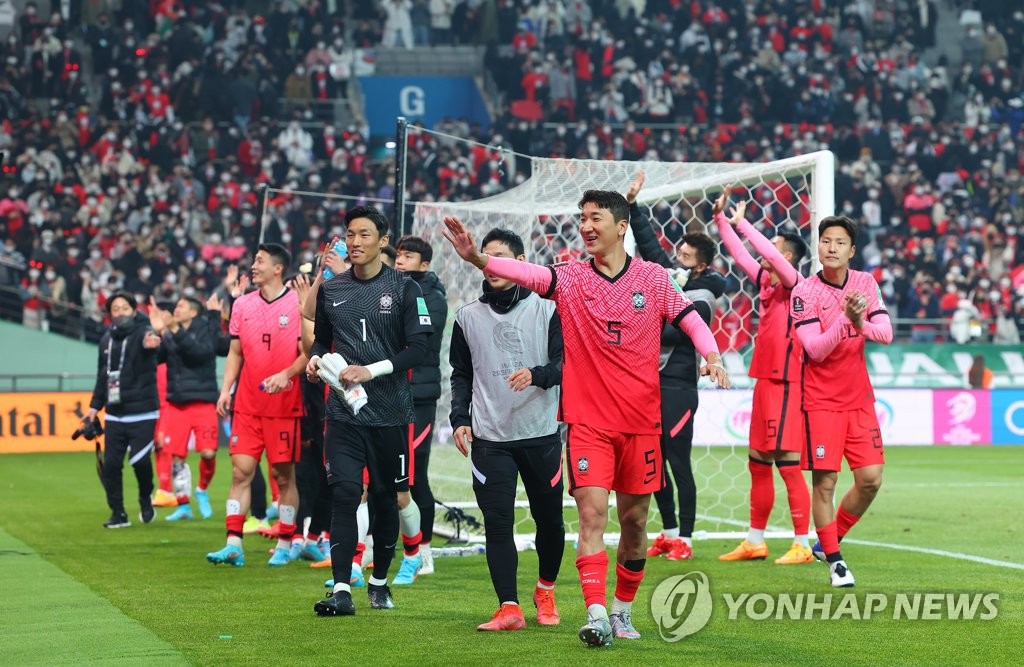 | ▲ South Korean players and coaches wave to fans at Seoul World Cup Stadium in Seoul on March 24, 2022, after defeating Iran 2-0 in the teams' Group A match in the final Asian qualifying round for the 2022 FIFA World Cup. (Yonhap) |