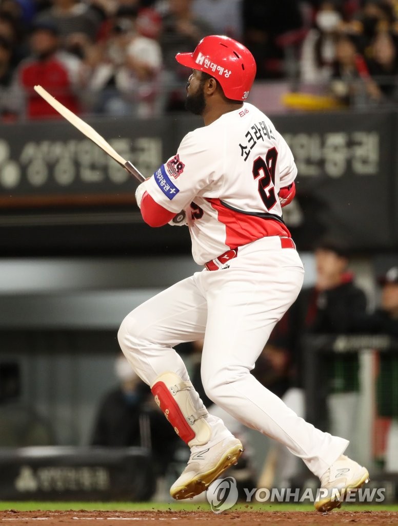 In Gwangju, Hwang Dae-in broke a 1-1 tie with a two-run blast in the bottom of the fourth inning for the Tigers, who tacked on a run each in the fifth and the sixth. Three runs each in the seventh and eighth completed the rout.