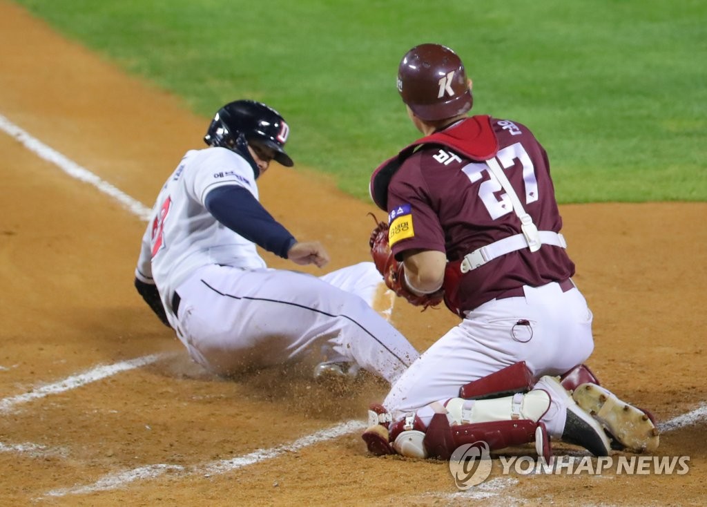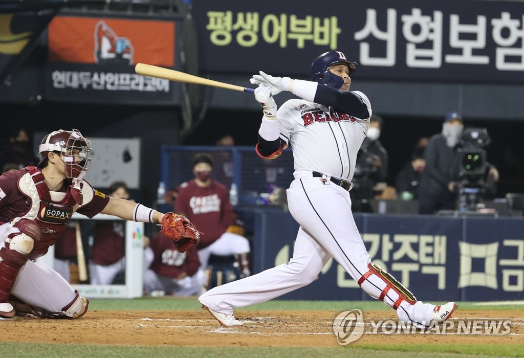 Heo Kyoung-min then made it 9-1 for the Bears with an infield single, when shortstop Kim Hye-seong failed to field a soft grouder.