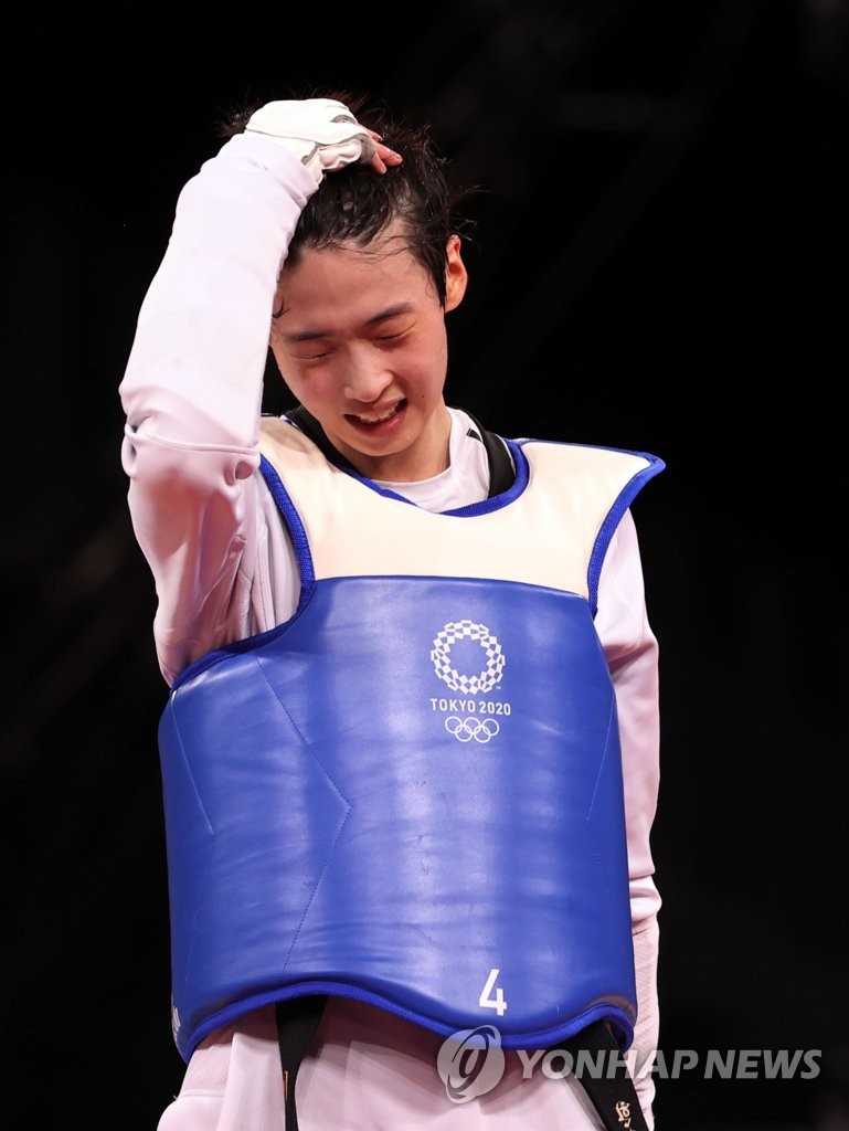 | ▲ Lee Da-bin of South Korea reacts to her loss to Milica Mandic of Serbia in the final of the women's +67kg taekwondo event at Makuhari Messe Hall A in Chiba, Japan, on July 27, 2021. (Yonhap) |