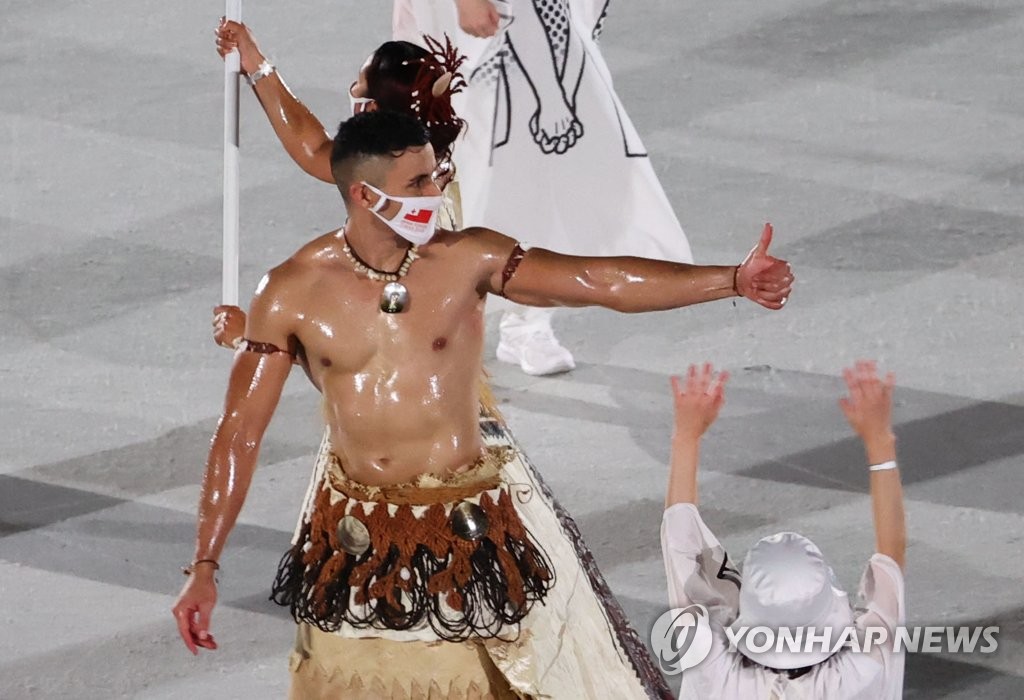 이날 오후 일본 도쿄 올림픽 스타디움에서 열린 개회식에서 122번째로 입장한 통가의 피타 타우파토푸아(태권도)는 상반신에 오일을 발라 번쩍거리는 근육을 드러낸 채 개회식장에 기수로 들어섰다.