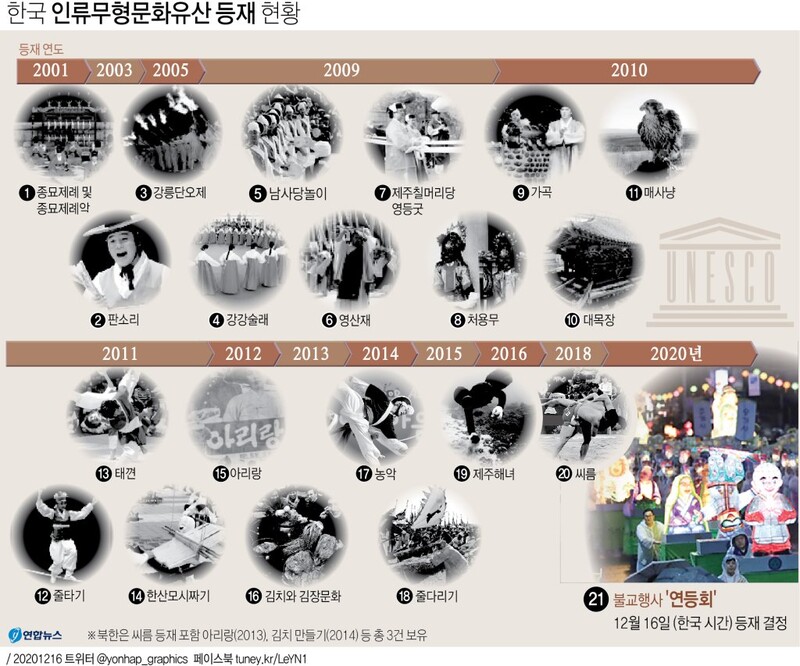 (서울=연합뉴스) 장예진 기자 = 유네스코 무형유산보호협약 정부간 위원회(무형유산위원회)는 16일(한국시간) 온라인으로 개최된 제15차 회의에서 연등회의 인류무형유산 등재를 확정했다.