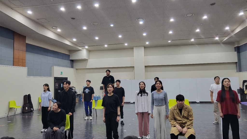 | ▲ 뮤지컬 '백만송이의 사랑' 연습 장면 공개 (서울=연합뉴스) 임지우 기자 = 22일 오후 서울 중구 경향아트힐에서 열린 뮤지컬 '백만송이의 사랑' 연습 장면 공개에서 배우들이 시연하고 있다. 2022.09.22.wisefool@yna.co.kr |