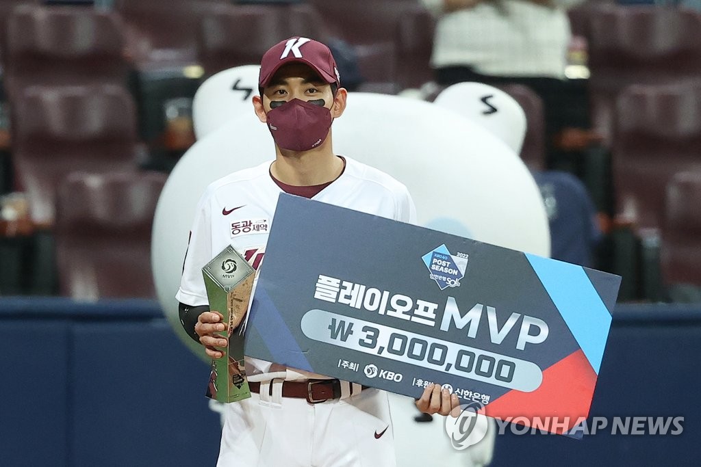 Lee was also the MVP in the second round in 2019, when he batted 8-for-15 with three RBIs in a three-game sweep of the SK Wyverns to send the Heroes to the Korean Series.