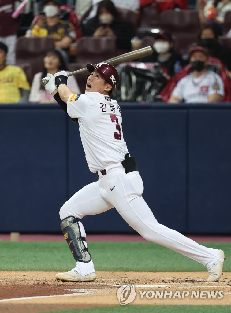But the Heroes had the quick answer in the bottom first. They, too, scored with three consecutive one-out singles, as Kim Hye-seong knocked in the tying run with a bloop single to shallow left field against starter Casey Kelly.