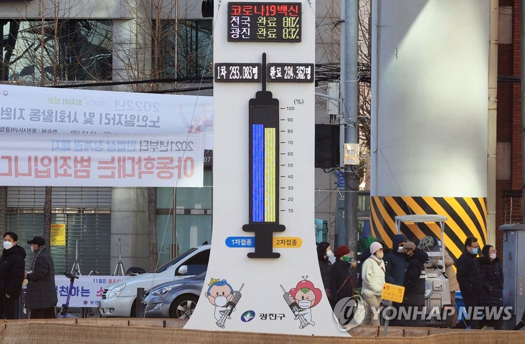 The KDCA said a total of 42.59 million people, or 82.9 percent of the country's population, have received their first shots of COVID-19 vaccines, and 41.13 million people, or 80.1 percent, have been fully vaccinated.