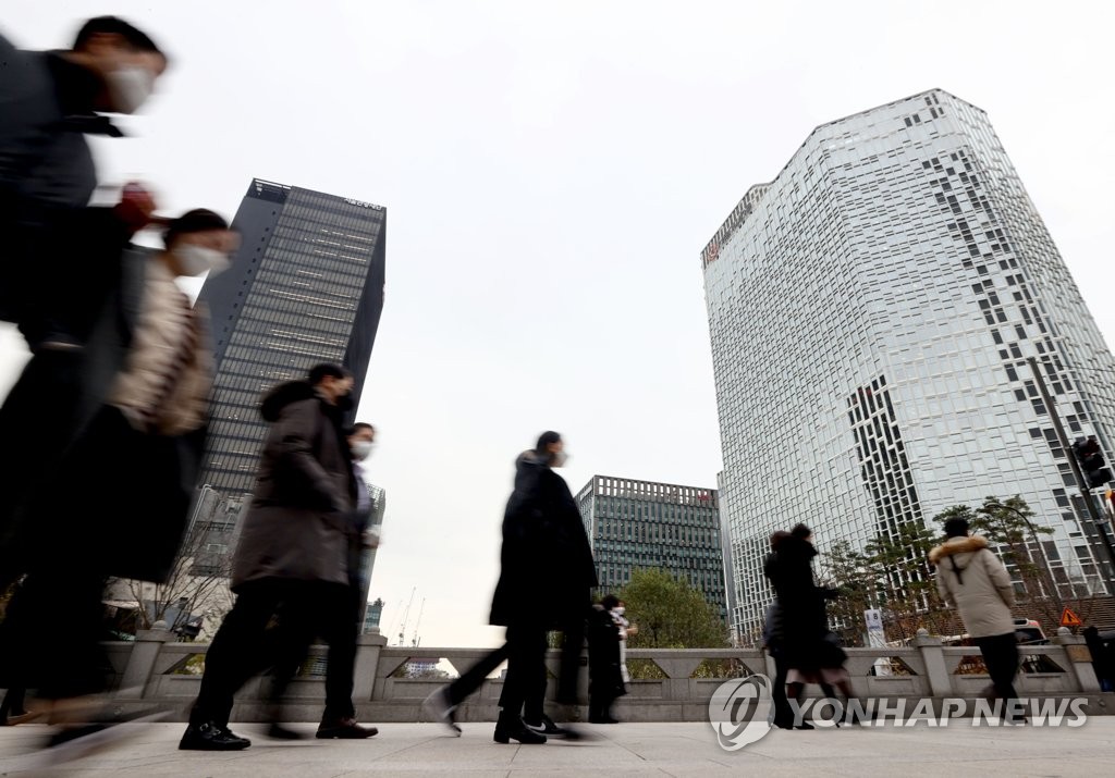 | ▲ This photo, taken Dec. 2, 2021, shows salaried workers crossing a road for lunch meetings in downtown Seoul amid concerns over the spread of a new virus variant. (Yonhap) |