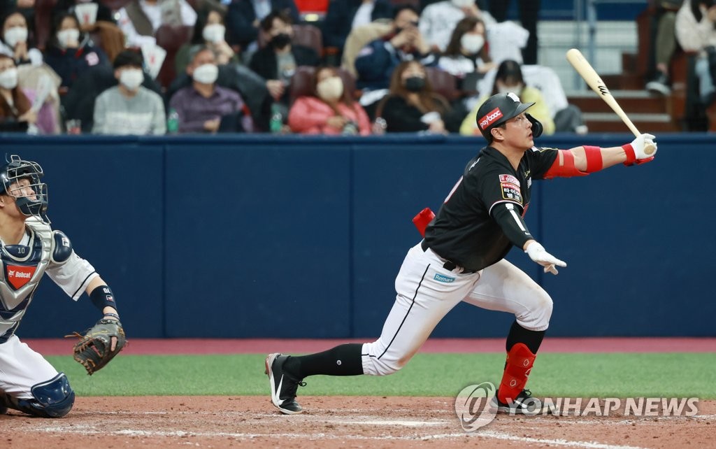 The next batter, Hwang Jae-gyun, drove in the team's third run with a sacrifice fly to center.