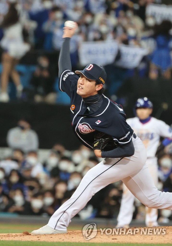 The Bears' top right-handed reliever, Lee Young-ha, was unavailable after tossing 66 pitches on Sunday to clinch the previous series against the LG Twins. Kim said he had to ride Hong as long as possible.