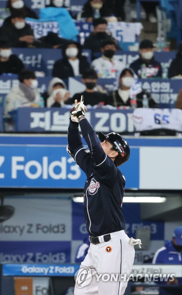 They loaded the bases on two hits and a walk. At two outs, No. 9 hitter Kang Seung-ho tied the score at 2-2 with a single up the middle.