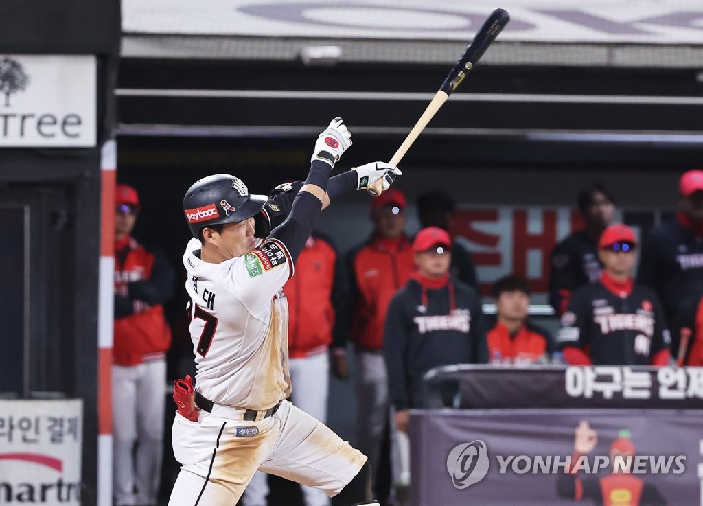 Reliever Jang Hyun-sik was summoned to clean up the mess, but Bae drove a hanging slider into the left field corner for a double. It cleared the bases for the Wiz and broke the hearts of the Tigers, who couldn't muster up a response in the top ninth.