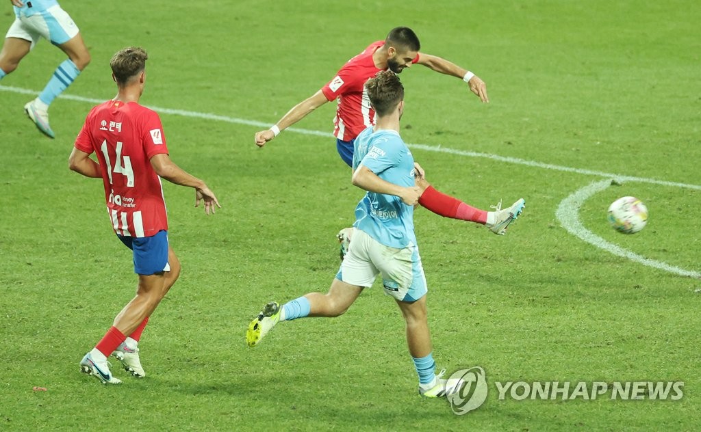 | ▲ 야니크 카라스코 골 (서울=연합뉴스) 신준희 기자 = 30일 서울월드컵경기장에서 열린 쿠팡플레이 시리즈 2차전 AT마드리드와 맨체스터 시티의 경기. AT마드리드 야니크 카라스코가 골을 성공시키고 있다. 2023.7.30 hama@yna.co.kr |