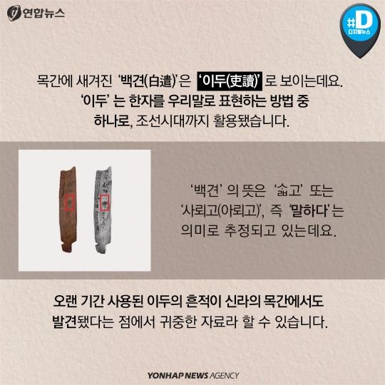 목간에 새겨진 '백견(白遣)'은 이두로 보이는데요. '이두(吏讀)'는 한자를 우리말로 표현하는 방법의 하나로, 조선 시대까지 활용됐습니다.