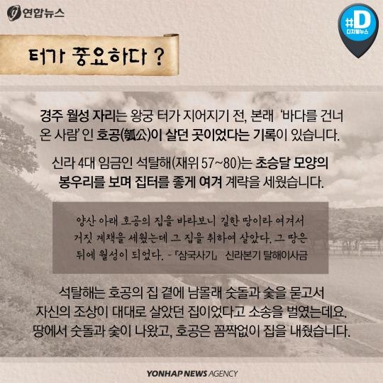 신라 4대 임금인 석탈해(재위 57~80)는 초승달 모양의 봉우리를 보며 집터를 좋게 여겨 계략을 세웠습니다.