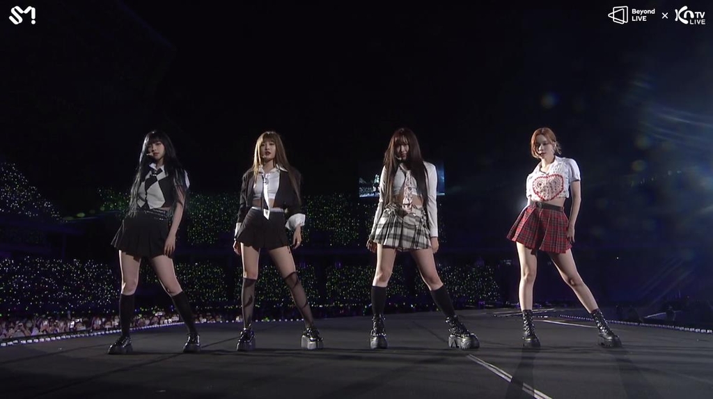 | ▲ SM타운 콘서트에서 무대를 꾸미는 걸그룹 에스파 [SM타운 콘서트 캡처.] |