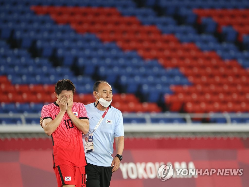 YOKOHAMA, Japan, July 31 (Yonhap) -- South Korean Olympic football head coach Kim Hak-bum did a better job protecting his own players than they did defending their opponents on Saturday, following South Korea's 6-3 loss to Mexico in the quarterfinals of the Tokyo Olympic men's football tournament.