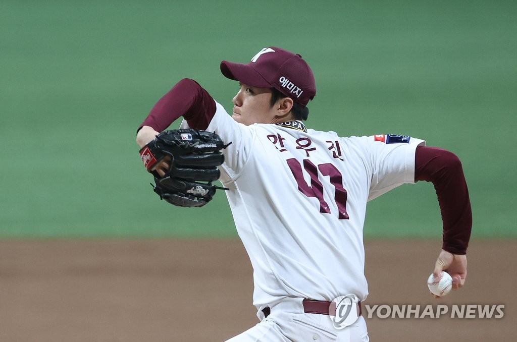 | ▲ Kiwoom Heroes starter An Woo-jin pitches against the LG Twins during the top of the first inning of Game 3 of the second round in the Korea Baseball Organization postseason at Gocheok Sky Dome in Seoul on Oct. 27, 2022. (Yonhap) |