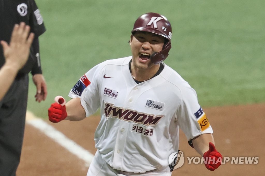 SEOUL, Oct. 27 (Yonhap) -- Powered by back-to-back home runs in the seventh inning, the Kiwoom Heroes defeated the LG Twins 6-4 on Thursday to move within a victory of reaching the South Korean baseball championship series.