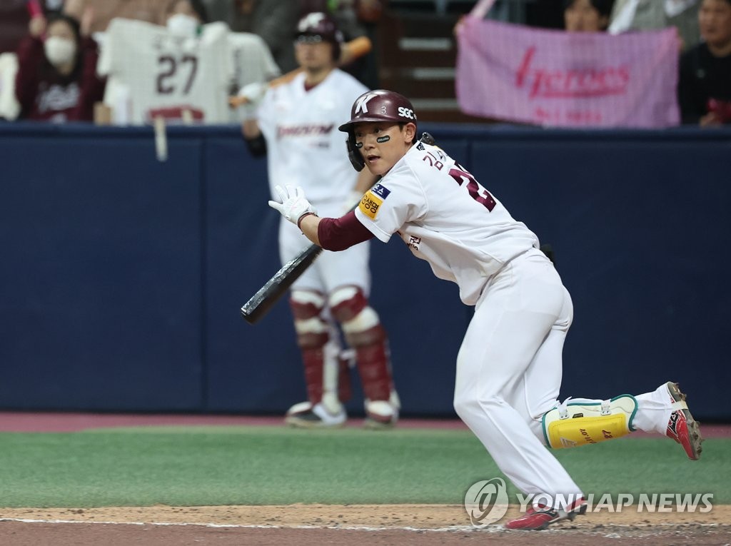 Kim Tae-jin followed up with a single to left to put the Heroes up 3-2.
