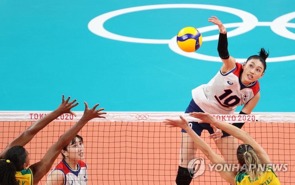 TOKYO, Aug. 6 (Yonhap) -- South Korea's Cinderella run through the Tokyo Olympic women's volleyball tournament hit a speed bump on Friday, with a straight-set loss to Brazil.