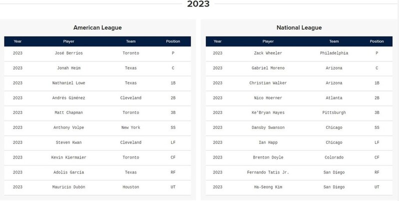| ▲ 2023년 MLB 양대리그 골드글러브 수상자 명단 [MLB닷컴 홈페이지 캡처. 재판매 및 DB 금지] |