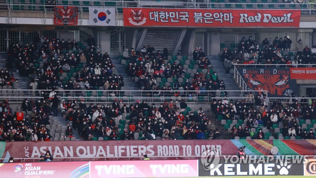 ▲ Fans attend a 2022 FIFA World Cup qualifying match between South Korea and the United Arab Emirates at Goyang Stadium in Goyang, Gyeonggi Province, on Nov. 11, 2021. (Yonhap)