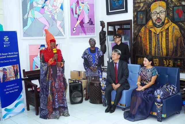 | ▲ 지난 10일 니케 아트 갤러리에서 부산세계박람회 홍보대사로 위촉된 니케(왼쪽) [주나이지리아대사관 제공·재판매 및 DB 금지] |