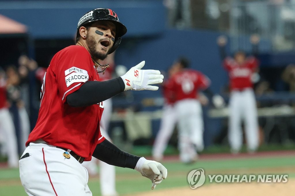 (LEAD) Landers take Korean Series lead over Heroes after late rally