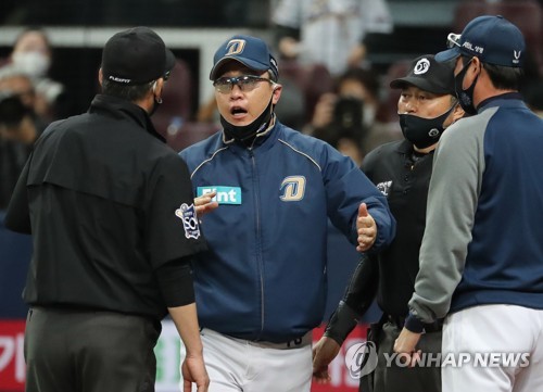 8회 심판 판정에 항의한 상황을 두고 이 감독은 "번트 상황이었는데 주심은 파울을 선언했고, 타자 정수빈은 몸에 맞았다고 주장했다"며 "비디오 판독에서는 몸에 맞았다고 결론이 나왔지만, 제가 항의한 건 스윙이었다"고 설명했다.