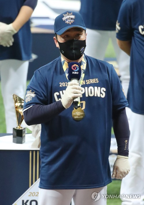 정규시즌 내내 선수들을 감쌌던 이 감독은 "모든 선수가 고맙다. 특히 (부상을 딛고 KS에서 호투한) 구창모, 팀을 잘 이끈 양의지, 공격에서 잘해준 나성범과 에런 알테어가 우승에 큰 도움을 줬다"고 말했다.