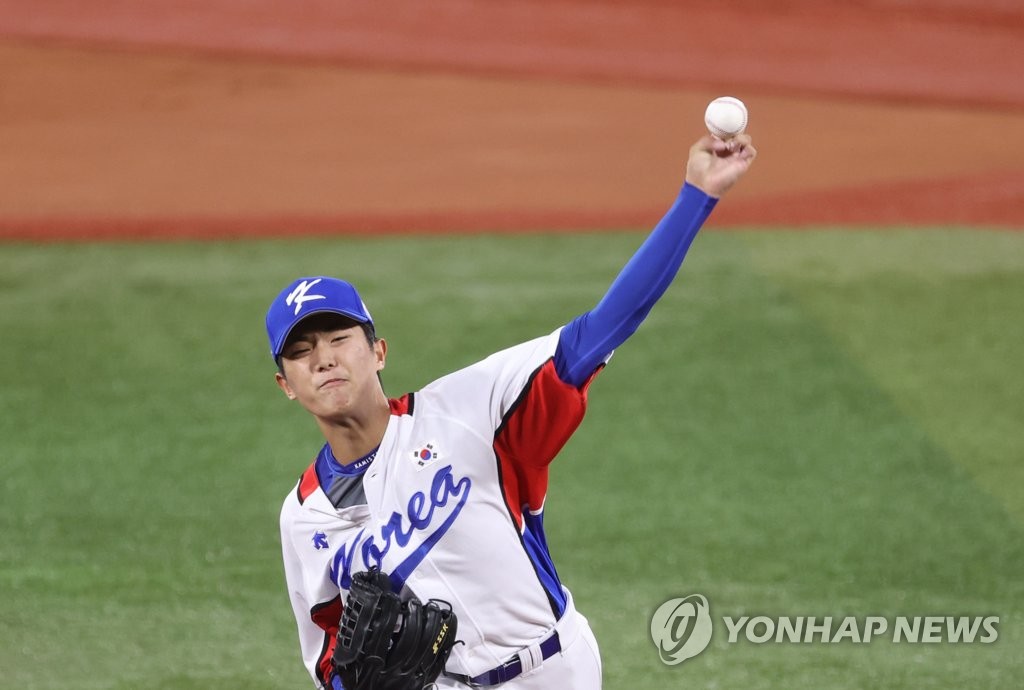 | ▲ South Korean starter Lee Eui-lee pitches against the Dominican Republic in the top of the first inning of the teams' first round game of the Tokyo Olympic baseball tournament at Yokohama Stadium in Yokohama, Japan, on Aug. 1, 2021. (Yonhap) |