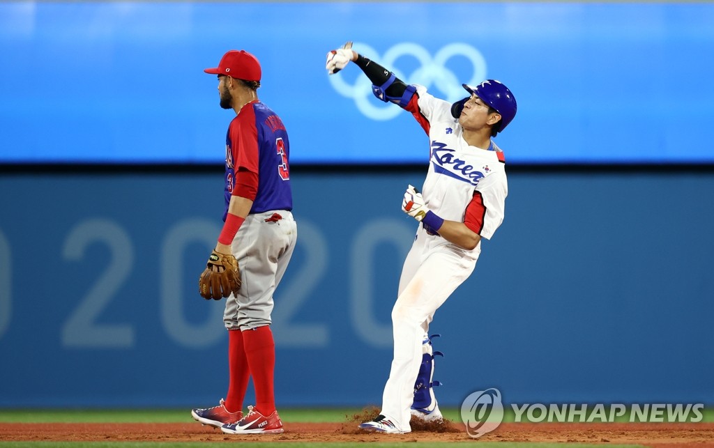 YOKOHAMA, Japan, Aug. 1 (Yonhap) -- The offense that had been cold on a hot and muggy night in southern Japan had an outburst that few saw coming, as South Korea walked off on the Dominican Republic to open the knockout stage of the Tokyo Olympic baseball tournament on Sunday.
