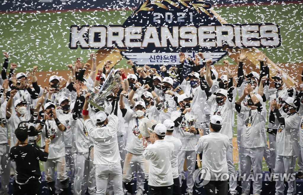 The Wiz defeated the Doosan Bears 8-4 to complete a four-game sweep of the South Korean baseball championship series on Thursday.