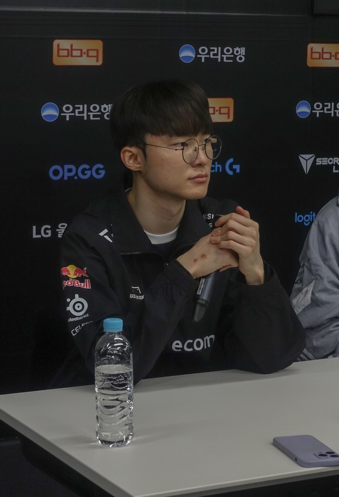 | ▲ 시즌 개막 특별전 직후 인터뷰하는 '데프트' 김혁규 (서울=연합뉴스) 김주환 기자 = 디플러스 기아 '데프트' 김혁규가 10일 서울 종로구 'LoL 파크'에서 열린 시즌 개막 특별전 후 기자회견에서 질문에 답변하고 있다. 2023.1.10 jujuk@yna.co.kr |