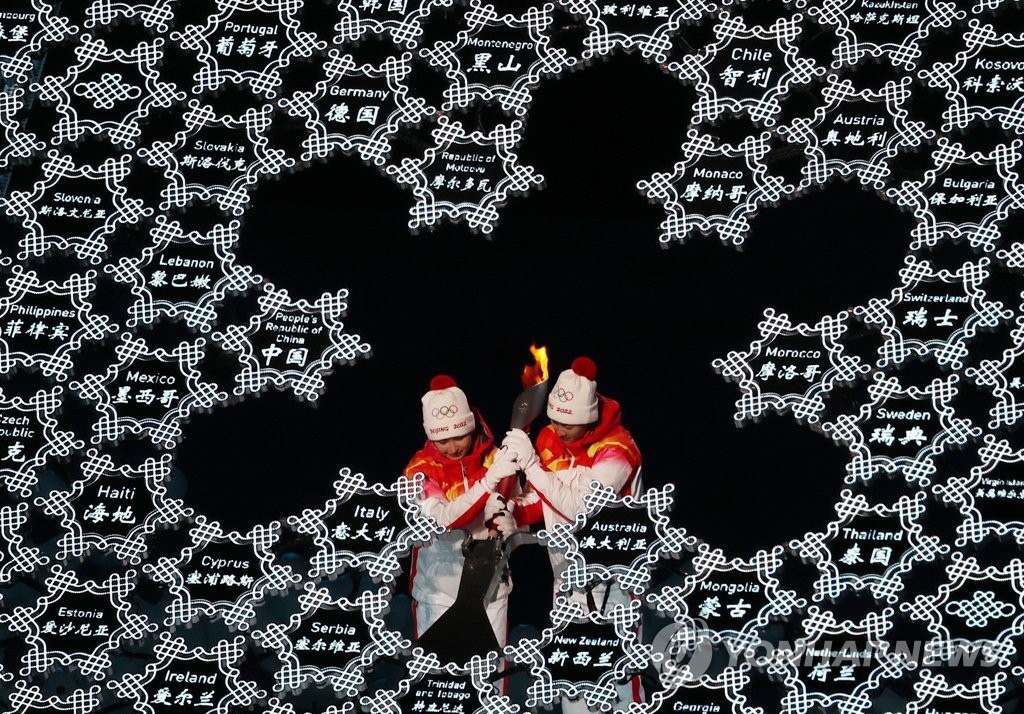 BEIJING, Feb. 4 (Yonhap) -- The 24th Olympic Winter Games began in Beijing on Friday with an understated ceremony showcasing virtues of the Chinese culture and expressing hope for a reunion of people around the world -- a hope that rings hollow under the cloud of a global pandemic and diplomatic boycotts of the event.