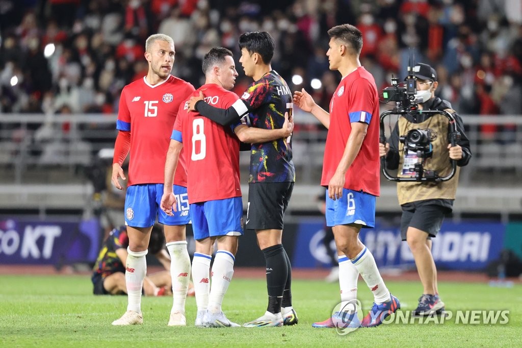 | ▲ 코스타리카 선수들과 인사나누는 손흥민 (고양=연합뉴스) 서대연 기자 = 23일 고양종합운동장에서 열린 한국과 코스타리카 축구 대표팀 평가전에서 2-2 동점으로 경기를 마무리한 한국 손흥민이 코스타리카 선수들과 인사하고 있다. 2022.9.23 dwise@yna.co.kr |